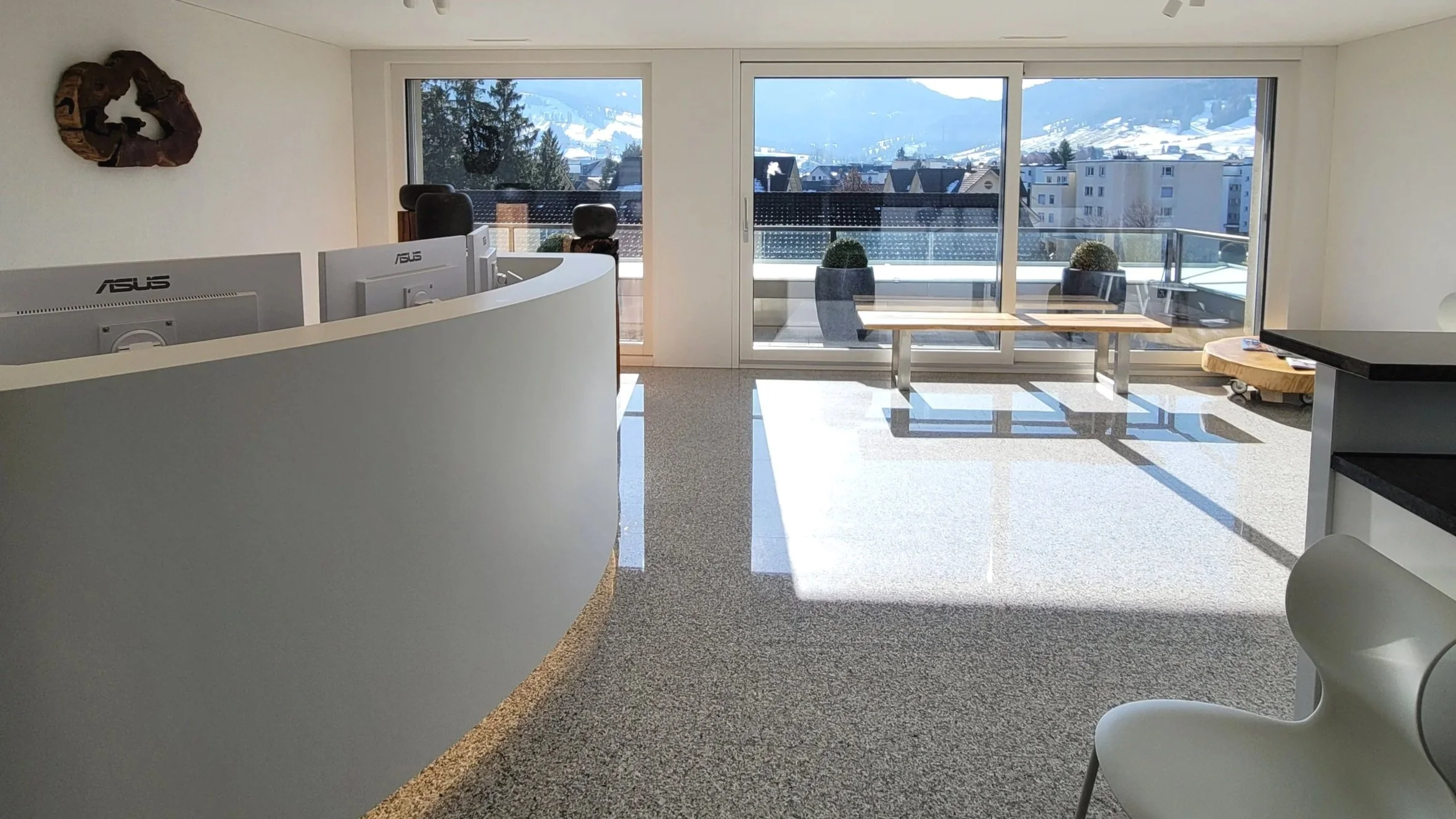 Ein weiteres Highlight sind unsere Räumlichkeiten: Die Kombination aus moderner Technik und warmen, rustikalen Holzelementen schafft auf zwei hellen Stockwerken eine angenehme, inspirierende Arbeitsatmosphäre, eingebettet in die naturnahe Umgebung des Ägeritals.
